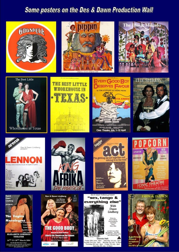 Des and Dawn Lindberg have been in the business of show business for 45 years. Their company, "Cabaret and Theatre" was established in 1965 and was the first non racial theatre production company to play in public venues all over South Africa.